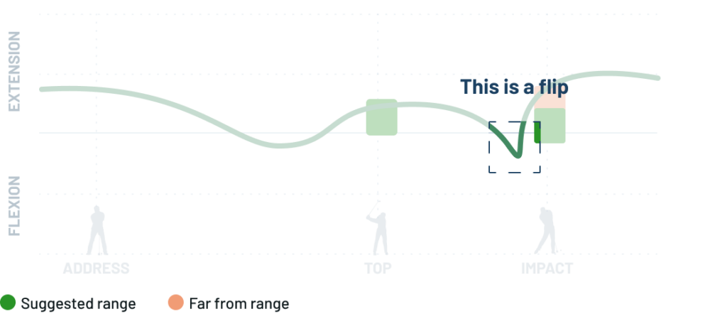 你可以通过查看挥杆图表轻松判断自己是否翻转了手腕。如果你看到在下杆过程中手腕伸展数值进入了推荐范围,而在击球前又突然回升,这通常就是翻转手腕的明显迹象。
